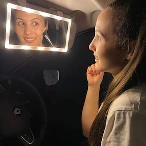Este é um espelho pode ser preso em seu quebra-sol e ser utilizado para ajudar em maquiagens, luz reserva e selfies!