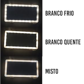 O espelho conta com inumeros leds, nas cores branco frio, branco quente e misto!