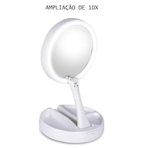 Também possui os dois lados funcionais (frente e verso), sendo de um lado com ampliação de 1x para maquiagem geral e do outro lado apresenta grande ampliação 10x para realização de trabalhos detalhados.