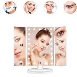 Espelho de Maquiagem Dobrável Triplo com Iluminação LED - Branca Espelho de Maquiagem Dobrável Triplo com Iluminação LED - O Acessório Perfeito para Sua Beleza Design moderno e elegante que traz a experiência de um camarim para sua casa Três painéis articulados: espelho central com visão normal e laterais com ampliações de 2x e 3x Iluminação LED de alta qualidade ajustável com botão sensível ao toque Estrutura rotacionável de até 180 para o ângulo mais confortável durante o uso Formato dobrável que facilita o armazenamento e o transporte, ideal para viagens Fabricado em plástico ABS resistente, garantindo durabilidade e leveza Conexão via cabo USB incluso para maior praticidade O Espelho de Maquiagem Dobrável Triplo com Iluminação LED é a solução perfeita para quem busca precisão na maquiagem, cuidados com a pele ou depilação. Tenha sempre a iluminação ideal e uma visão detalhada do seu rosto Especificações: Composição: Plástico ABS , Vidro e componentes Eletrônicos. Dimensões: Altura: 31,5cm x Largura: 13,5cm x Comprimento: 18,5cm Dimensão do espelho aberto: Altura: 26cm x Comprimento: 40cm Peso Aprox.: 912g Conteúdo: 01 Espelho de Maquiagem Dobrável Triplo com Iluminação LED - Branca Marca: Não Informado