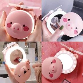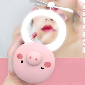 Porquinho oinc oinc Portátil Espelho led Ventilador Com um ventilador de resfriamento pessoal e Luz de Preenchimento de LED o espelho de maquiagem portátil permite que você rotoque a sua maquiagem durante o dia de forma rápida e prática. Além disso, permite que você desfrute de suas selfies em qualquer lugar, durante o dia ou à noite. -material: Plástico + TPR + Componentes eletrônicos -fonte de alimentação: DC5V / USB -tempo de Carregamento : 2-4 horas -cor : Rosa -tamanho : 8.5X3.5X10CM -peso : 165g LED Luz Tempo trabalho: lâmpada de maquiagem 2-3 horas Fan Working Tempo : cerca de 40 minutos.