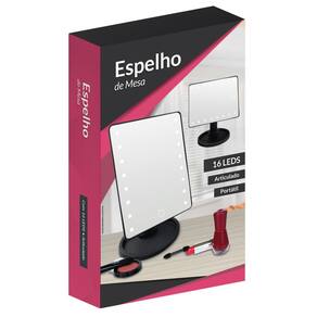 Marca:Casita Modelo: Espelho Led de Mesa Articulado Forma do espelho: Retangular Com luz: Sim Cor da moldura:Preto Tipo de alimentação:USB ou Pilha Altura:28,5 cm Outros Peso:0,78 g Estilo:Moderno Quantidade de luzes:16 Usos do espelho:De maquiagem Largura:17 cm Diâmetro:12 cm