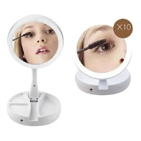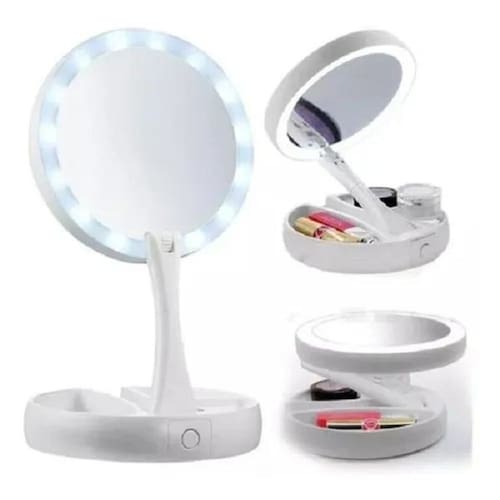 Espelho de dupla face com de Led My Fold Mirror JG- 988 Projetado e desenvolvido para iluminar toda a extensão do seu rosto, possui leds por toda a circunferência do espelho, de ambos os lados proporcionando uma iluminação perfeita para fazer sua maquiagem, desenhar ou até mesmo retocar as suas sobrancelhas.