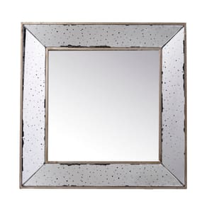 Espelho quadrado Benjara Filo de 18 polegadas, bordas de bandeja elevadas, moldura espelhada