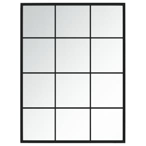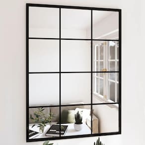 Espelho de parede vidaXL 31,5"x23,6" - Design clássico de estrutura de metal preto, decoração de casa em vidro intrincado, fácil de instalar, com quatro ganchos de montagem