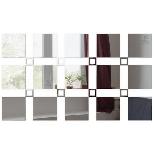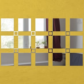 Espelho Decorativo Conjunto Sala Jantar Quarto quadrados vazados O espelho em acrílico decorativo é uma excelente escolha para decoração, pode ser fixado em sua sala, quarto, área de convivência, onde desejar e de preferência que não seja exposto ao sol e chuva, a peça é fixada por meio de fita dupla face VHB 3M, super resistente e seguro, não cai da parede, a fixação deve ser feita em uma parede lisa e reta onde seja possível a aderência da fita, enviamos a peça com gabarito e película protetora que deve ser retirada pelo cliente. Produto- Espelho decorativo Grande em acrílico espelhado Fabricante: Visual Laser acrílicos Aplicação: Pode ser aplicado em qualquer superfície lisa onde a fita tenha aderência, Parede, papel de parede, gesso liso sem textura, azulejo, madeira ou em outros móveis Tamanho: Kit com 23 espelhos decorativos 15 peças de 30 cm 8 peças vazadas de 10 cm Proteção: Todas as peças são enviadas com película protetora que deve ser retirada pelo cliente, Para removê-la, force com a unha na ponta até que suba um plástico e a remova com cuidado. Garantia: Garantimos que todas as peças chegarão intactas e sem arranhados, caso contrario enviamos novamente a peça danificada mediante comprovação. Limpeza: Para limpeza é indicado apenas um pano úmido, sem qualquer outro tipo de produto podendo danificar a peça. Ean: 7908097601670