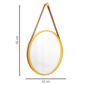 Espelho Decorativo Adnet Amarelo Alça Corino Caramelo 40cm Redondo O espelho Adnet foi criado na década de 1950 pelo design Jacques Adnet, que decidiu unir diferentes materiais, como metais e couro, para criar o produto que hoje é uma das peças mais emblemáticas da decoração moderna e contemporânea Moldura em Alumínio que proporciona leveza ao produto, e permite acabamento em pintura epóxi-pó não enferruja . Espelhos Que Não Distorcem a Imagem, fabricados através do processo cooper free, livres de metais pesados, que não causa prejuízos a saúde e ao meio ambiente. Alça em corino de alta qualidade, que possui gravação similar ao couro e fundo de camurça microfibra de alta resistência e anti mofo. Acabamento do verso em Revestimento de TNT para assegurar a conservação do produto. Acompanha Gancho/Pendurador de alumínio com acabamento em pintura epóxi-pó não enferruja . Incluso parafuso e bucha para instalação. Utilize nosso vídeo de montagem. Ean: 7908068031505