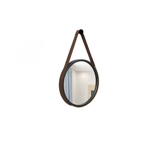 Palavras-chave: espelho decorativo, Adnet Preto, alça sintética café, 20cm redondo.