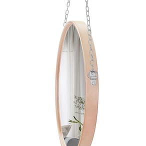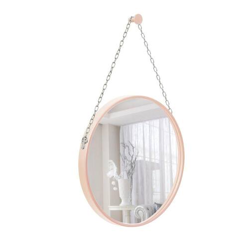 Espelho Decorativo Adnet Rosa Alça Corrente Cromada 60cm Redondo - 60 cm