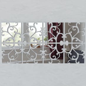 A aplicação desse espelho é simples e versátil. Ele pode ser fixado em qualquer superfície lisa, como paredes, papel de parede, gesso liso, azulejo, madeira ou móveis. A fixação é feita através de fita dupla face VHB 3M, que é super resistente e segura. Com o kit composto por 8 peças de 30cm cada, você pode montar o espelho conforme preferir.
