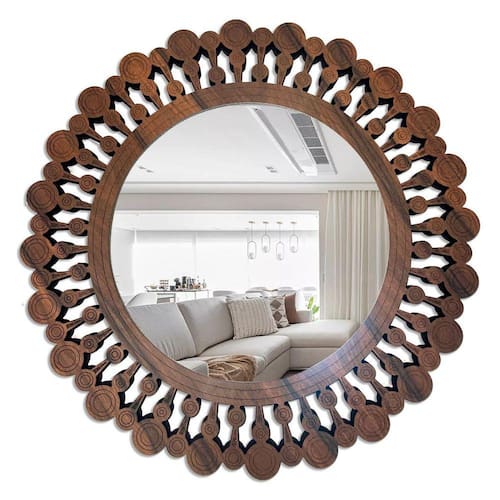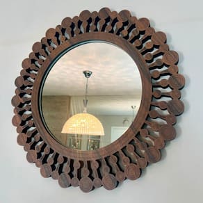 Espelho Decorativo Moldura Madeira Pegui Quebec 65 cm Cor da moldura: Marrom Nessa peça juntamos a beleza e praticidade da madeira nas laterais da peça, com o reflexo perfeito do espelho de vidro no centro. Assim conseguimos unir beleza e funcionalidade. Sem dúvida essa peça irá tornar seu ambiente mais acolhedor e com certeza irá impressionar suas visitas com o bom gosto e beleza de sua casa. ================================== INSTALAÇÃO: ================================== Sua instalação é muito simples, pois o espelho vai com um pendurador importado reforçado tipo garrinha, fixado na parte traseira do espelho, que será pendurado num parafuso ou prego que acompanham o produto, sendo assim é só escolher o local em que será colocado o espelho e utilizar uma furadeira ou martelo para colocar a bucha e o parafuso ou o prego onde será pendurado a peça. Dimensionamos sempre a quantidade de suportes para o tamanho e peso de nossos produtos, não se preocupe eles são muito resistentes. Acompanha: Parafuso e bucha nº 8. ================================== EMBALAGEM: ================================== Nossos espelhos são muito bem embalados, fazendo com que os riscos no transporte sejam reduzidos a quase nada. Caso acontecer um eventual dano no transporte, fazemos a reposição. ================================== ESPECIFICAÇÕES TÉCNICAS: ================================== Largura: 45 cm Comprimento: 45 cm Espelho de vidro: 27 cm Peso: 4 kg Cor: Marrom PF Material: Laterais da peça em MDF marrom. Centro da peça revestido com espelho de vidro. Garantia: 3 meses contra defeito de fabricação; Limpeza: Utilizar um pano macio/flanela levemente umedecido com água ou lustra móveis poliflor ; Nunca utilize álcool; Marca: Creatus. ================================== PERGUNTAS FREQUENTES: ================================== 1 - Possuem em outras cores Sim Temos nas cores: nogueira, louro-freijó e amêndola rústica. É possível vê-las no Google. Assim que fazer a compra, mandar uma mensagem de acordo com a cor desejada. 2 - Possuem outras medidas Sim Produzimos na medida que te servir. Basta perguntar por aqui que passamos o valor, e caso se interessar, passamos o link do anúncio com as respectivas medidas.