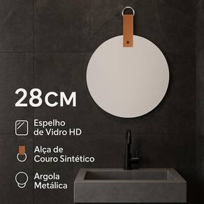 Benefícios Design minimalista com acabamento redondo limpo, que harmoniza com qualquer estilo de decoração Alça sintética elegante que proporciona charme e sofisticação ao ambiente Versátil e funcional, perfeito para lavabos, halls de entrada, escritórios, quartos e até como presente criativo Instalação prática, leve e fácil de pendurar sem necessidade de grandes ajustes
