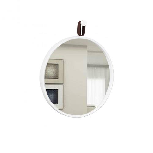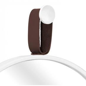 Espelho Decorativo Short Strip Branco Alça Corino Café 40 cm Redondo - 50 x 40 cm