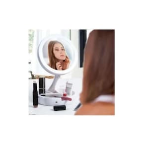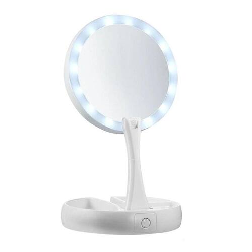 Espelho De Luz Led Esse espelho, é ótimo para você que na correria cotidiana, sempre arruma um tempo para retocar a maquiagem ou arrumar o cabelo.Por ser dobrável, leve e compacto, ele ocupa pouco espaço o tornando ideal para se guardar na bolsa, sendo que ele pode ser estendido em até 33 cm de altura. Além de ter um design super elegante, este espelho de maquiagem com dupla face, é iluminado com leds, sendo muito prático, basta pressionar um botão na parte inferior do suporte, que ligará as luzes LED, as luzes de LED são super brilhantes em ambos os lados para iluminação perfeita da imagem. O mesmo gira e se transforma em um poderoso espelho de ampliação que aumenta em 10x a imagem. CARACTERÍSTICAS: Modelo: Espelho Led 10x Dupla Face Material do Suporte: Plástico Vidro: Livre de distorção Leds: São classificados por 30.000 horas Espelho de Aumento: 10x Construído com organizador para acessórios 4 pilhas AA Medidas do Produto: 28x12x15 Peso: 338g Itens Inclusos: 1 Espelho Dobrável com LED e 360º 1 Manual de Instruções 4 Pilhas AA Ean: 7891760680860