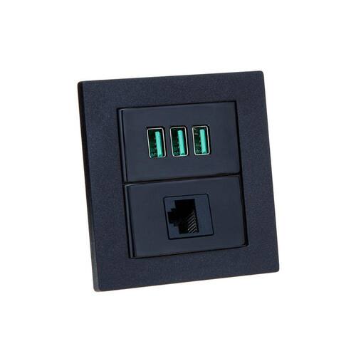 Espelho Duplo Reto 3 USB 5.2A 1 RJ-45 - Cor: Preto
