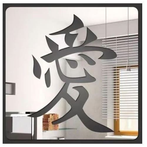 Espelho decorativo ideograma chinês sala quarto escritório