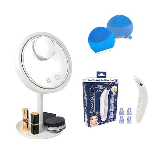 Eleve sua rotina de cuidados faciais com o Espelho Ring Light com Ventilador e Mini Espelho 5x. Este kit completo proporciona uma experiência de beleza única, permitindo que você cuide da sua pele de maneira eficaz e prática. O Espelho Ring Light com Ventilador oferece uma iluminação perfeita para a aplicação da maquiagem e cuidados com a pele. Com sua luz LED ajustável, você terá uma visão clara e nítida, permitindo uma aplicação precisa e impecável. O ventilador embutido oferece uma brisa suave, mantendo você fresca e confortável durante o uso. O Mini Espelho 5x é perfeito para aperfeiçoar os detalhes. Com ampliação de 5x, você pode observar com clareza cada poro e imperfeição da sua pele, permitindo uma limpeza profunda e uma aplicação precisa dos seus produtos favoritos. O DermaSuction é um poderoso dispositivo de sucção projetado para remover cravos, impurezas e células mortas da pele. Com diferentes ponteiras e níveis de sucção ajustáveis, você pode personalizar o tratamento de acordo com suas necessidades individuais, deixando sua pele mais limpa, suave e revitalizada. A Esponja Facial Elétrica proporciona uma limpeza profunda e relaxante. Com suas cerdas macias e movimentos vibratórios, ela remove suavemente as impurezas da pele, estimula a circulação e ajuda a reduzir a aparência de poros dilatados. Sinta sua pele renovada e radiante após cada uso. Aprimore seus cuidados faciais com o Espelho Ring Light com Ventilador e Mini Espelho 5x + DermaSuction + Esponja Facial Elétrica. Desfrute de uma pele limpa, rejuvenescida e com uma aparência saudável. Cuide de si mesma com praticidade e eficiência, e conquiste uma pele radiante e bonita todos os dias. Caracteristicas do Espelho:- Categoria de produto: 3 em 1 Espelho Cosmético; - Potência: USB / Pilhas;- USB: 1 x Micro USB;- Tipo de Bateria: 4 x baterias AA (não inclusas);- Material do produto: Plástico ABS; Características do DermaSuction: - Plástico PP; - Plástico ABS; - Componentes eletrônicos; - Contagem: 2 Pilhas AA 1.5V (NÃO INCLUSAS); Características da Esponja Elétrica: - Material: Silicone macio e hipoalergênico; - A Prova DÁgua;- Controle De Intensidade; Tamanho e Peso (aproximadamente): -Tamanho da embalagem: 30,5x 24 x 12,30 cm (Altura, Largura e Comprimento);- Peso total da unidade: 1,011 kg;Conteúdo da embalagem:1 x Kit de Espelho 3 em 1; 1 x Esponja Massageadora Elétrica; 1 x DermaSuction; ATENÇÃO: Produtos que possuierem variação nas cores serão enviados aleatóriamente conforme a disponibilidade em estoque. Código de Certificação ANVISA: ISENTO DE REGISTRO Marca: Draik