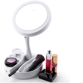 Espelho Maquiagem Articulável Aumenta 10x 1x Foldaway Mirror Lâmpada de espelho dupla face, espelho com ampliação de 10x no espelho traseiro e 1x na espelho frontal podendo girar ao contrario. Luzes super brilhantes na parte dianteira e traseira. Dobras planas para armazenamento e transporte. Espelho com funcionamento a base de 4 pilhas Aa NÃO Inclusas ou por USB. 3 compartilhamentos na base para guardar acessórios de maquiagem. Botão Liga/Desliga na parte de trás da base. Dimensões: Altura do espelho articulado com base: extensão máxima de 28 cm Diâmetro da base: 15 cm Altura da base: 2,5 cm Itens Inclusos: 01 Espelho Luminária Maquiagem Articulável 01 Manual de Instruções Ean: 7423096270592