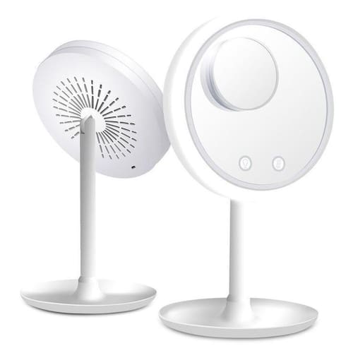 Espelho Maquiagem com Ventilador e Led + Espelho 5x Aumento Espelho Para Maquiagem Ventilador 3 Velocidades e Espelho que amplifica 5x