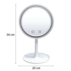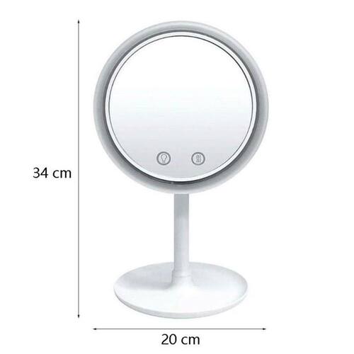 Novo espelho portátil que chegou para facilitar a sua vida na hora de fazer a sua maquiagem. Esse espelho possui 40 leds que ficam nas partes laterais da parte frontal do espelho e um ventilador pra te manter com um ar fresco durante o processo. Espelho Iluminador de 40 Leds, Ventilador com 3 Níveis de Potência e um Mini Espelho com Ventosa que aumenta 5x da Visão. Características do Produto : - Material: Polipropileno e Componentes Eletrônicos. - Alimentação: Liga por USB ou com 4 Pilhas AA 1.5v Não acompanha . - Voltagem: 5v. - Quantidade de Led: 40 Led. - A Função Ventilador possui 3 Velocidades. - Possui 2 tipos de espelho, o maior que tem a visão normal e o menor que tem um aumento de 5x para te ajudar naquele detalhe. - Espelho com 40 Luzes de Led Frontal. - Espelho com Botão Touch Screen na parte frontal para Ligar e Desligar as funções. - Possui base removível - O espelho possui um espaço na base para você deixar os seus produtos de maquiagem acolhidos enquanto os usam. Conteúdo da embalagem: 1x - Espelho Visão normal. 1x - Mini Espelho Visão Aumentada 5x. 1x - Cabo USB somente o cabo Dimensões: - Diâmetro do Espelho maior de 20 cm - Diâmetro do Espelho menor de 7,5 cm - Altura total de 34 cm - Largura da Base de 17 cm - Peso 540g Observações: - Imagens meramente ilustrativa - Anúncio refente aos itens descritos no conteúdo da embalagem citado acima. - O cabo USB pode ser ligado à um adaptador USB tipo de carregador de celular. - Cabo USB não acompanha o adaptador. - 3 Meses de garantia contra defeitos de fabricação