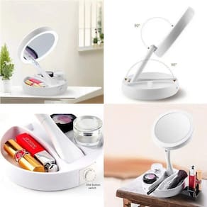 O Espelho Redondo Dobrável Mesa com LED Mesa Maquiagem da Commerce Brasil, é feito para você mulher que mesmo na correria cotidiana, sempre arruma um tempinho para retocar a maquiagem ou arrumar o cabelo. Por ser dobrável e acompanhar em sua base um organizador de maquiagem, leve e compacto, ocupa pouco espaço, sendo ideal para guardar na bolsa, na mala de viagem e até mesmo em casa.