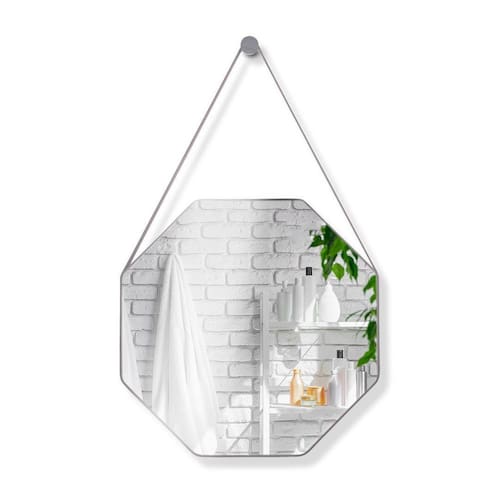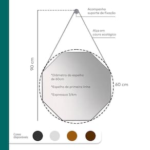 Com espessura de 3/4mm o espelho garante qualidade de reflexibilidade sem distorções. O espelho possui moldura em couro ecológico garantindo a estética, durabilidade e acrescentando mais charme na composição no design do produto.