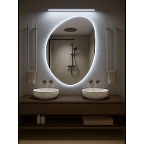 Informações Importantes: - A fonte é bivolt para maior facilidade - Cor do Led é Branco Frio - Borda do espelho é lapidada Mais proteção, garantindo que o espelho não oxide com o tempo - 100% Nítido e sem distorção - Suporte Nivelador Para uma instalação simples e alinhamento perfeito