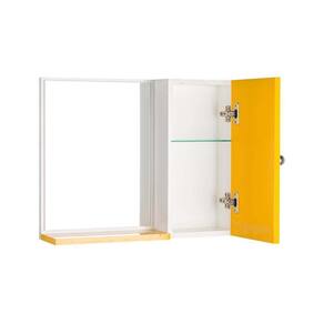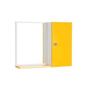 Espelho para Banheiro com Armário Amarelo. Já vem montado, pronto para colocar na parede. É só abrir a caixa e instalar em seu banheiro. Acompanha 2 parafusos com buchas para instalar na parede. Obs: a colocação dele na parede é por conta do cliente, mas é bem fácil de fazer, basta uma furadeira, régua e lápis para marcar o local de instalação. Basta colocar os dois parafusos na parede, depois encaixar o armário com espelho neles (tem 2 suportes metálicos atrás do armário, para encaixar nos parafusos). Armário para Banheiro com Espelho na cor Amarelo é ideal para organizar vários itens. Possui prateleira interna em vidro, armário com porta e amplo espelho. É a escolha perfeita para seu banheiro. Material: MDP 15mm Cor: Amarelo e Branco Altura total: 46cm Largura total: 58cm Profundidade total: 12,5cm Medidas do Espelho: 33cm x 42,5cm Instalação: a montagem e instalação do produto na parede são por conta do cliente Limpeza e conservação: recomenda-se a limpeza com pano úmido, não utilizar produtos abrasivos ou químicos Obs: Este anuncio inclui somente o armário com espelho, todos os itens de decoração das fotos não estão inclusos.