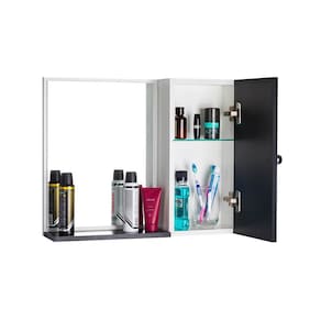 Espelho Para Banheiro Com Armário Cor Preto E Branco é a escolha perfeita para quem busca elegância, sofisticação e praticidade para seu banheiro.