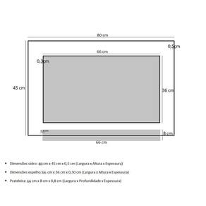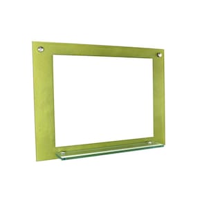 Espelho para banheiro com prateleira 80cm verde oliva Os nossos espelhos são ideais para banheiros e lavabos trazendo um toque especial no projeto de decoração e proporcionando um design moderno e arrojado no ambiente. Além da elegância, sofisticação e praticidade tem a qualidade e a durabilidade indiscutível, pois todos os itens podem molhar que não irá danificar, os vidros são pintados com tinta de alta performance, o que lhe garante a permanência da cor . Os suportes da prateleira e as tampas dos parafusos são de inox, mais uma de excelência da qualidade desse produto. Itens inclusos: - vidro temperado colorido: 80 cm x 45 cm largura x altura - espelho: 66 cm x 36 cm x largura x altura - prateleira: 66 cm x 8 cm largura x profundidade - kit parafusos completo para instalação Espessuras: - vidro temperado: 5 mm - espelho: 3 mm - prateleira: 8 mm Montagem: montagem e instalação não inclusa na venda ou preço do produto, elas são de inteira responsabilidade do cliente. Atenção: o espelho já vai fixado no vidro. Imagens ilustrativas.