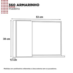 Espelheira em madeira para banheiro 360 com armarinho - Cozimax, perfeito para você que tem pouco espaço no seu banheiro com seu armarinho lateral você consegue guardar seu produtos de higiene pessoal e ainda tem sua prateleira externa. Dimensões: - Largura: 53 cm - Altura: 38 cm - Profundidade: 13 cm Características: - Produto: Espelheira (MONTADO) - Modelo: 360 com armário - Marca: Cozimax - Quantidade de porta(s): 1 - Quantidade de prateleira(s) interna: 1 - Quantidade de prateleira(s) externa: 1 - Estrutura: Madeira - Puxador: Não possui - Dobradiças: Sistema de molas (padrão) - Possui porta escovas: Não - Garantia: 3 meses Acabamento da Porta: Pintura Acabamento da Prateleira: Pintura Altura do Espelho: 36 Ambiente Principal: Banheiro Composição: MDP Cor: Tamarindo/Preto Cor do Produto: Tamarindo/Preto Escala de Brilho: Semi-Brilho Espessura do Espelho: 3 Espessura do Material da Estrutura: 15 Formato do Espelho: Retangular Itens Inclusos: 1 Espelheira Largura do Espelho: 36 Linha ou Coleção: 360 Manual de Montagem e Instalação: https://product-hub-prd.madeiramadeira.com.br/862269/documents/7d444c8d-4a85-4582-8171-d99747fd27bb1mdpespelheira360armarinho.pdf Material da Porta: MDP Material da Prateleira: MDP Material Principal: MDP Necessita Montagem: Não Origem do Produto: Nacional Peso: 7 Peso Máximo por Prateleira: 2 Possui Espelho: 01 Possui iluminação: Não Possui Portas: 01 Possui Prateleiras: 01 Possui Toalheiro: Não Possui Tomadas: Não Recomendações de Uso, Manutenção e Limpeza: Pano umedecido. Tipo de Dobradiça/Corrediça da Porta: Metálica Tipo de Fixação do Espelho: Parafusos Tipo de Porta: Bater Tipo de Puxador da Porta: Não Possui