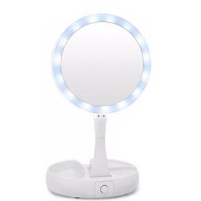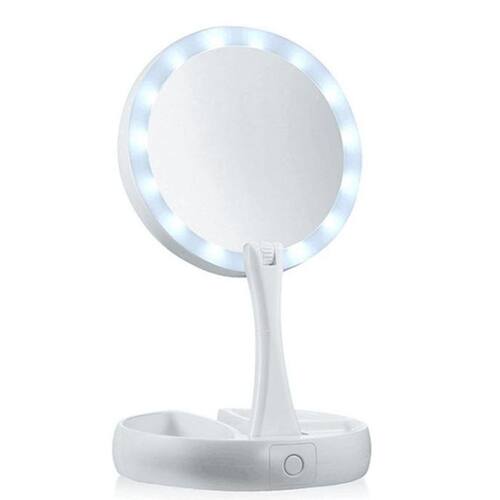 Quando já estiver fora de casa este espelho é ideal para você fazer sua maquiagem no camarim, carro, ambientes que possam não ter muita iluminação, quarto, sala ou na sua casa. My Foldaway Mirror é um espelho de vaidade iluminado e de dois lados. Tem uma poderosa ampliação de 10x. Dobra e gira para fácil utilização e armazenamento. O LED super brilhante acende-se em ambos os lados para iluminação perfeita da imagem. É feito de vidro isento de distorção. Este espelho 1x gira para um poderoso espelho de ampliação de 10x. Possui um organizador embutido para acessórios. É leve e compacto para viagens. O espelho é nítido, limpo e livre de distorção. - lâmpada de espelho dupla face: espelho com ampliação de 10x no espelho traseiro e 1x na espelho frontal podendo girar ao contrario. - luzes super brilhantes na parte dianteira e traseira - dobras planas para armazenamento e transporte - Espelho com funcionamento a base de 4 pilhas AA NÃO INCLUSAS - 3 compartilhamentos na base para guardar acessórios de maquiagem - Botão Liga/Desliga na parte de trás da base Conteúdo da embalagem: 1- Espelho com base Dimensões: - Altura do espelho articulado com base: extensão maxima de 28 cm - Diâmetro da base: 15 cm - Altura da base: 2,5 cm Marca: My Fold Away Ean: 7898585680013