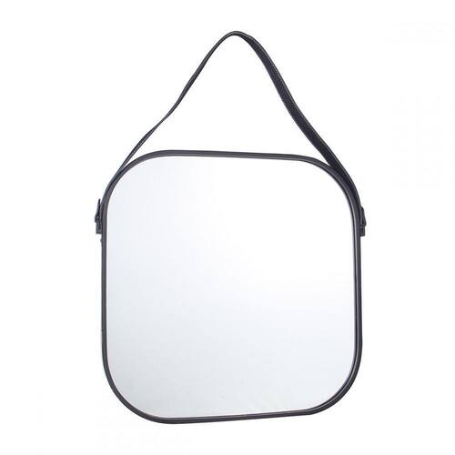 Cód.: KV0115Espelho Quadrado Decorativo Preto Alça CouroMaterial: Metal PretoDimensões: ø51x3CM