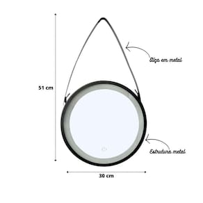 Espelho led touch adnet é uma espelho redondo com alça em metal suspenso decorativo 30 cm. Com um design super moderno, tenha um espelho da moda e super em alta! Ideal para colocar em qualquer ambiente, salas, quartos, banheiros, escritórios e hall. Possui 3 intensidades de luz sendo fria(Branco), Quente (Amarelo) e Morno (mescla das duas anteriores). O led só funciona ao manter a tomada ligada a energia.