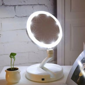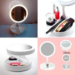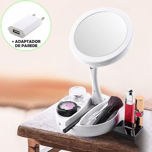 O Espelho Redondo Dobrável Mesa com LED Mesa Maquiagem da Commerce Brasil, é feito para você mulher que mesmo na correria cotidiana, sempre arruma um tempinho para retocar a maquiagem ou arrumar o cabelo. Por ser dobrável e acompanhar em sua base um organizador de maquiagem, leve e compacto, ocupa pouco espaço, sendo ideal para guardar na bolsa, na mala de viagem e até mesmo em casa.