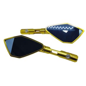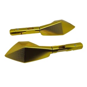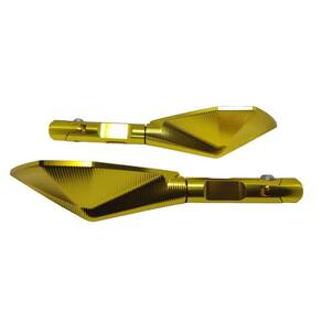 Especificação Técnica: Modelo Pentagonal Com Hastes Curtas em Alumínio na Cor Dourado Hastes Articuladas para Melhor Ajuste Retrovisores com Ótimo Design na Cor Dourada Acompanha Espelho Antirreflexo na Cor Azul e convexa para maior amplitude de visão Excelente Acabamento Fácil Instalação na Moto Encaixe Perfeito Formato Aerodinâmico que Evita Trepidações Garante Ótimo Campo de Visão ao Condutor Dimensões Aproximadas do Espelho LxA : 13x6,6cm Comprimento Total Aproximado: 27,5cm