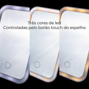 Características principais: - 3 cores de led; - botão touch discreto; - espelho com perfeito acabamento; - cor branca; - leve e compacto; - versátil; - acompanha cabo para carregar; - possui haste para ficar de pé.