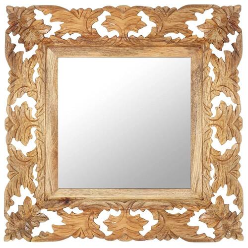 Este espelho de madeira esculpido à mão é uma adição fabulosa a qualquer espaço, misturando praticidade com boa aparência. Feito de madeira maciça de manga e com um lindo design esculpido à mão, não é apenas uma superfície refletiva prática, mas também melhora a aparência do seu banheiro, sala de estar