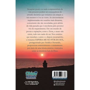 Em um mundo de provas e expiações, como a Terra, o acaso não existe, tudo tem razão de ser. Nos cenários que mesclam o antes e o depois encarnatório, o romance ESPERA-ME NO PÔR DO SOL, protagonizado por Amália e Fernando, proporciona entretenimento e ensinamento por meio de uma leitura atrativa e instrutiva sobre as imutáveis Leis de Deus.