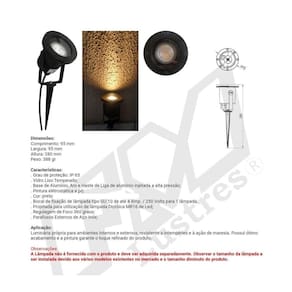 Luminária espeto projetor para jardim, para lâmpada led dicroica mr16/gu10 obs. Lâmpada não inclusa indicado para ambiente externo ou interno, de um toque decorativo em seus ambientes, já que este é um modelo de linhas modernas e muito bem aceito por arquitetos/designers. Muito utilizado para dar um facho de luz e deixar em evidência plantas, jardins verticais, paredes etc.