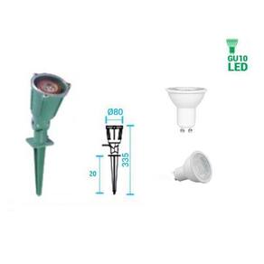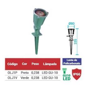 Luminária espeto para jardim para lâmpada led gu-10, corpo em nylon plástico de engenharia na cor verde. Resistente as intempéries do tempo. Tampa/lente transparente de policarbonato, fixada com parafusos bicromatizados. Soquete gu-10. Regulagens nas articulações, permitindo ajuste do foco de luz para qualquer direção.