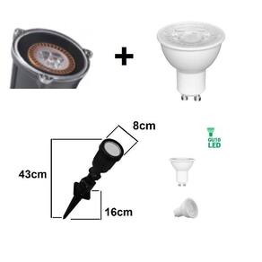 Tipo de Lâmpada: Led Gu10 - Potência máxima 10W Led / 100W Halogena Tipo de Soquete: GU10 Cor: Preto Comprimento total: 43cm Comprimento da haste: 16cm Diâmetro: 8cm Tensão: 127-220V Soquete em porcelana; Marca: Olivo Produto: Espeto de Jardim Tipo de Material: Plástico - Nylon Quantidade de Lâmpadas: 1 Com sensor de movimento: Não É à prova d'água: Sim Contém lente de vedação em policarbonato na cúpula onde é inserida a lâmpada;