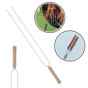 Fixação firme e segura dos alimentos: As duas hastes paralelas evitam que as peças de carne girem sozinhas, garantindo um assado uniforme de todos os lados.