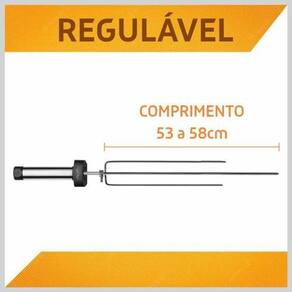 Rotary speto econômico a pilha regulável de 53 a 58cm Garfo tridente em aço niquelado Cabo em aço inox Porta pilhas e apoio frontal em plástico de engenharia suporta até 200oc Pilhas não inclusas O espeto giratório movido a pilha rotary speto econômico é o que há de mais moderno na linha dos artigos para churrasco. É uma das facilidades que a rotary speto apresenta para você na hora de fazer seu churrasco, por ser um espeto portátil e prático você pode usar em diversos modelos de churrasqueiras. O seu funcionamento é através de 4 pilhas do tipo aa não inclusas na embalagem . Com autonomia de 20 horas utilizando pilhas comuns, ou 60 horas utilizando pilhas alcalinas se desejar. Assim você fica tranquilo na hora de fazer seu churrasco pois como não utiliza energia elétrica você não fica dependente de uma tomada para ligar seu rotary speto econômico, podendo ainda ser levado para diversos ambientes incluindo pescaria, praia, acampamento, até mesmo para a casa do cunhado : Marca: Rotaryspeto