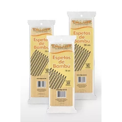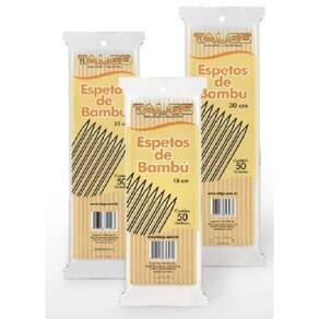 Descrição e Características: Espetos roliços fabricados em bambu asiático. Produto altamente sustentável e de baixo impacto ecológico. Especificações, quantidade na embalagem e código do produto:
