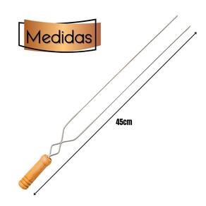 Espeto Duplo Alumínio 45cm com Cabo de Madeira Churrasqueira Dragão O Espeto Duplo de Alumínio 45cm com cabo de madeira Churrasqueira Dragão é ideal para churrascos práticos e bem assados. Com estrutura resistente, leve e de fácil manuseio, ele evita que os alimentos girem ao assar, garantindo cozimento uniforme. O cabo anatômico em madeira proporciona conforto e segurança térmica. Perfeito para carnes, legumes e muito mais. Um item essencial para todo churrasqueiro de verdade Características do Produto Tipo: Espeto duplo Material das hastes: Alumínio resistente Comprimento total: 45 cm Cabo: Madeira natural com acabamento anatômico Estrutura: Hastes duplas para maior estabilidade dos alimentos Indicação: Ideal para churrasqueiras domésticas e profissionais Seu design duplo mantém as carnes firmes e evita o giro indesejado ao assar, proporcionando cozimento uniforme. A leveza do alumínio com a pegada segura da madeira tornam esse espeto um item essencial para todo churrasqueiro Benefícios Evita que os alimentos girem enquanto assam Leve e resistente: alumínio que facilita o manuseio Cabo de madeira confortável e térmico Ideal para diversos cortes: , frango, picanha e legumes Fácil de limpar e guardar Perfeito para uso doméstico e Detalhes Técnicos Material das Hastes: Alumínio polido Comprimento Total: 45 cm Espessura dos fios: Aproximadamente 3 mm cada Tipo de Espeto: Duplo reto Distância entre as hastes: Ideal para fixação firme dos alimentos Cabo: Madeira com acabamento em verniz protetor Peso Aproximado: Super leve, fácil de manusear Espeto Churrasco Leve seu churrasco a outro nível com o Espeto Duplo 45cm Praticidade, segurança e sabor em cada assada. Garanta já o seu e vire o mestre da grelha Marca: Não Informado
