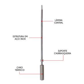 DESIGN E ESTRUTURA: - Lâmina de Inox; - Cabo Térmico; - Espetar Carnes, Coração e Asa de Frango.