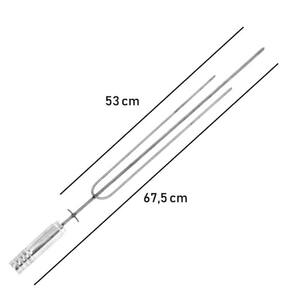CARACTERÍSTICAS: - - Espeto ideal para carnes, Linguiças, Frangos e muito mais - Feito em aço Inox 304, com cabo de Madeira Revestido em Alumínio - Muito resistente - Com Roldana multiponto, 17 posições, para churrasqueiras giratórias ou Suportes Fixos que tenham o Encaixe da Roldana
