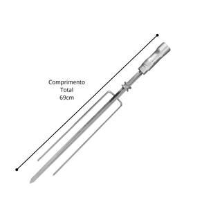 DESIGN E ESTRUTURA: - Lâmina e grafo de inox; - Cabo térmico; - Espetar carnes, coração e asa de frango; - Ideal para o seguintes modelo de churrasqueiras TITAN: AGE 04/06/08/15 Espetos - Prime Suprema 04/06 Espetos.