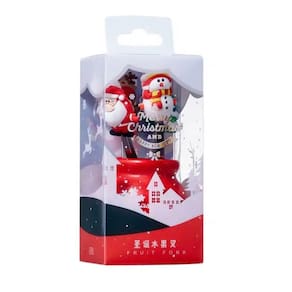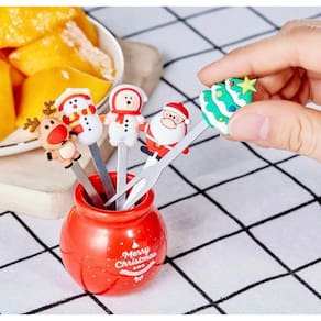 Esses garfos realmente destacam sua mesa de Natal. Feito de aço inoxidável, leve, durável e com acabamento perfeito. A extremidade é feita de silicone. Quando os garfos não estão em uso, podem ser colocados em um pote cerâmico vermelho que irá alegrar a sua ceia.